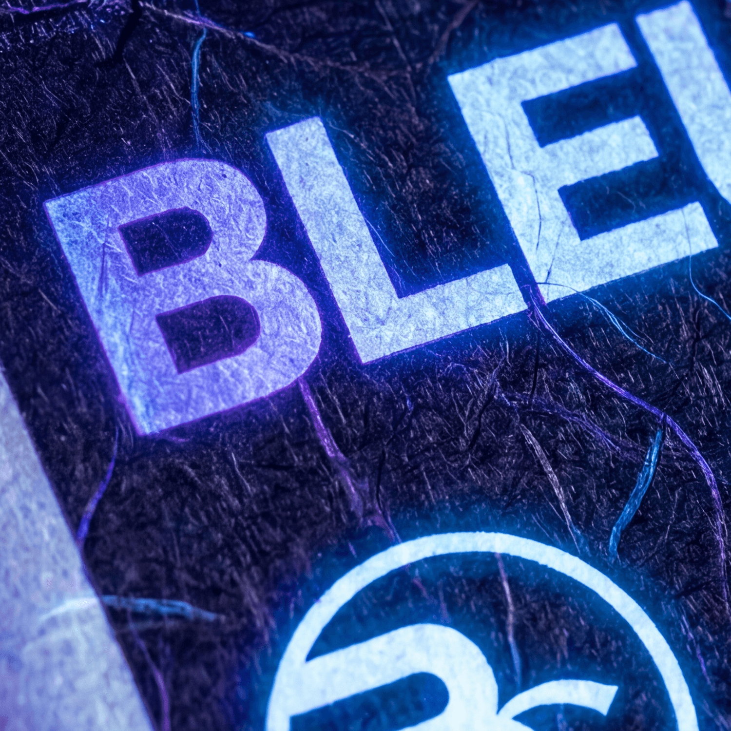 A metallic security foil embedded into the bill’s surface, shifting in depth and color as light or angle changes. Used in currency and ID tech, it resists counterfeiting through optical illusions and encoded BLEUUE iconography that can’t be replicated by print or scan.